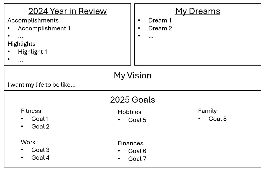 “I’ll tell you the secret to my success,” I said to one of my friends jokingly last year. I asked him to write down a few goals for each quarter of the year. What did he want to get done? It was simple, written on a post-it note and pasted above his work desk. He was skeptical at first, but by the time 2024 came to a close, he had achieved 5 out of 7 of the items on the list. Some people might liken this to “manifesting”, the pop psychology idea that by just imagining what you want to happen and focusing on it, you can make it happen. Personally, I would agree it is helpful to have a positive mindset, but there is a little more to it than just closing your eyes and wishing — or at least so says my Capricorn practicality. In any case, this January, my friend paid a bit closer attention when I explained my process in more detail. It inspired me to share it here.